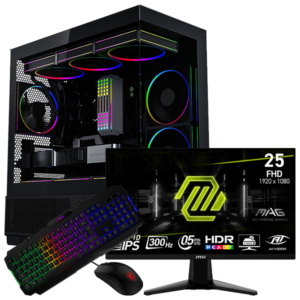 CPU: AMD Ryzen 7 5700XGPU: NVIDIA GeForce RTX 5070MB: MSI B550M PRO-VDHRAM: 16 Go ( 8 Go x 2 )SSD: 1 ToCASE: MSI MPG GUNGNIR 110R NOIRPSU: CONNECT 850W 80PLUS BRONZECooler: MSI MAG COREFROZR AA13 NOIR