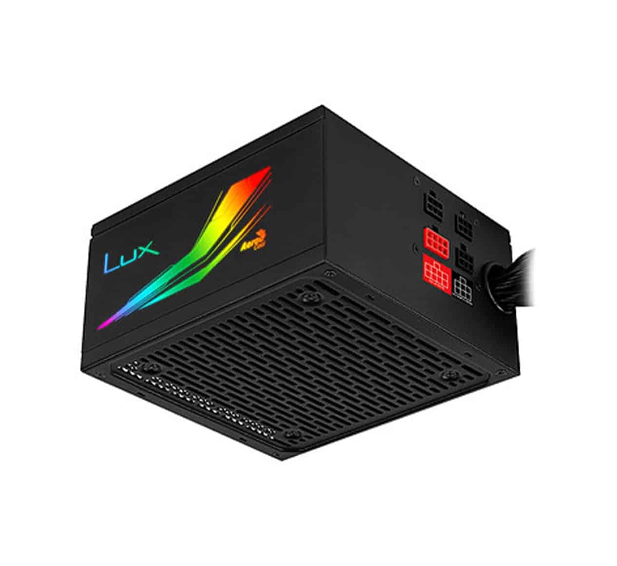 L’alimentation Aerocool LUX RGB 750M semi-modulaire offre un design soigné et élégant pour votre PC, et propose de bonnes performances avec sa certification 80PLUS Bronze. Grâce à une ventilation optimisée, le flux d’air a été accru de 30 % par rapport à un système standard.