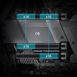 La Prime TRX40 Pro présente jusqu’à 4.0 lignes PCI Express provenant directement du processeur. Ces lignes peuvent être divisées en configurations x16/x16/x16 recouvrant le trio de slots PCIe x16 présents sur la carte. Ainsi vous avez la possibilité de booster votre GPU qui sera ensuite capable d’effectuer encore plus rapidement des charges intenses. Idéal si vous êtes créateur professionnel de contenu !