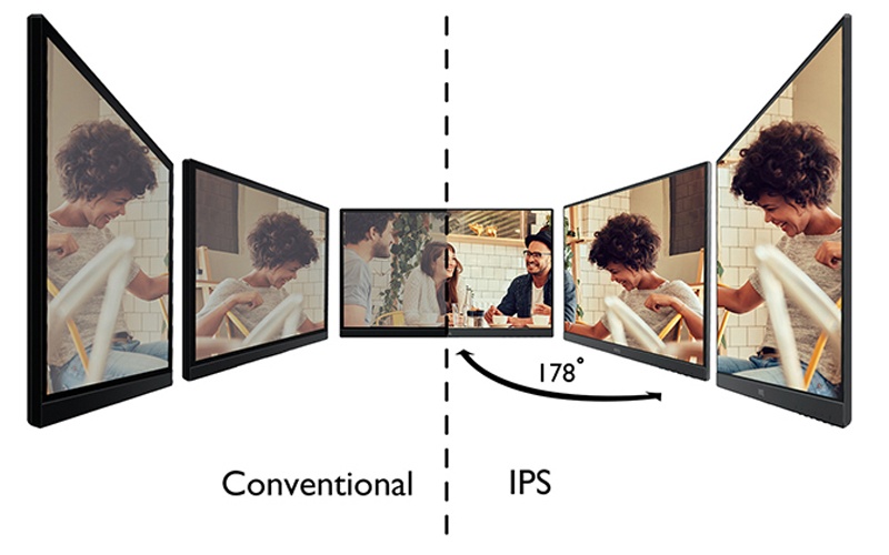 La technologie IPS (In-Plane Switching) assure la reproduction fidèle des couleurs et de l’image depuis n’importe quel angle. Des angles de vision vastes horizontaux et verticaux de 178° assurent une vue uniforme pour plusieurs personnes dans la salle.