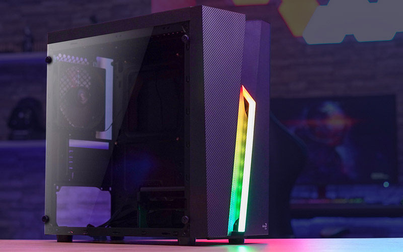 Ajoutez de la couleur avec le boîtier Aerocool Bolt Mini et sa façade dotée d’un rétro-éclairage RGB. Profitez de 13 modes disponibles et d’un bouton dédié sur le sommet du boîtier pour trouver l’ambiance la plus adaptée à vos envies ! Ce modèle dispose d’une finition avant au style fibre de carbone et d’une fenêtre en acrylique pour apprécier le spectacle à l’intérieur.