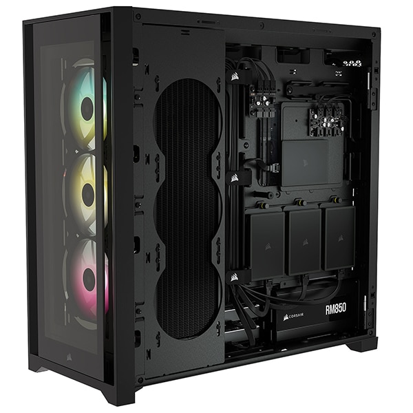 Le Corsair iCUE 5000X RGB Tempered Glass propose un câble management optimisé afin de favoriser un montage propre et rapide. Les câbles ne gênent pas la circulation du flux d’air et l’aspect visuel reste soigné.