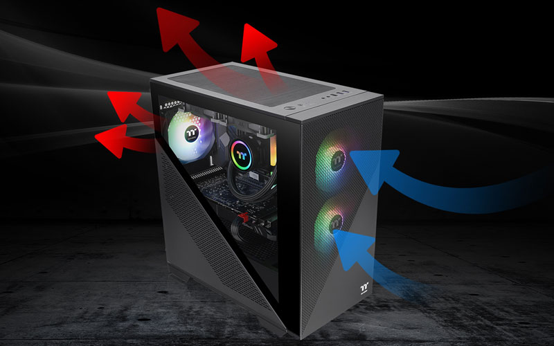 En ce qui concerne le refroidissement, le Divider 170 TG ARGB est configuré avec deux ventilateurs 120 mm ARGB PWM n façade) à roulement hydraulique qui peuvent réduire efficacement le bruit de fonctionnement et améliorer l’efficacité thermique. De plus, il peut contenir jusqu’à deux ventilateurs de 120 mm en haut, deux ventilateurs de 120 mm sur le capot de l’alimetation. Pour la compatibilité des radiateurs de watercooling, il peut supporter jusqu’à 280 mm à l’avant et 240 mm en haut.