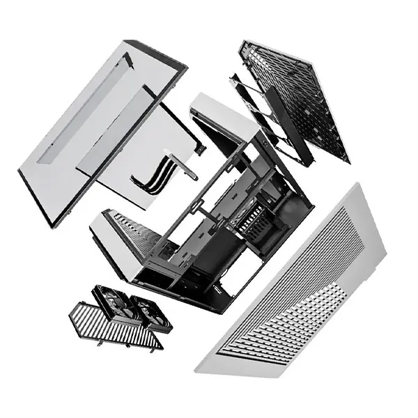 Un auvent protecteur de câble de montage s’intègre parfaitement dans le boîtier, permettant des cartes PCIE demi-hauteur derrière le trône de la carte graphique verticale. Le carénage de protection est le premier du genre, spécialement conçu pour le Y60.