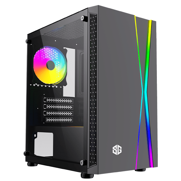 Porté par un design moderne mais minimaliste et un éclairage ARGB en façade, le boîtier moyen tour SG Lighning Noir accueillera idéalement l’ensemble de vos composants. Ce modèle est équipé d’une fenêtre en verre trempé,