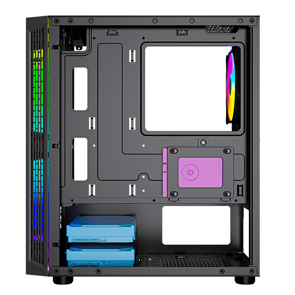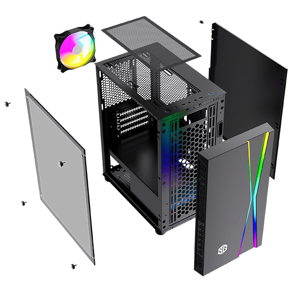 Ce boîtier élégant est doté d’une fenêtre en verre trempé et d’une façade éclairée de LED. Ainsi, vous pourrez le mettre en avant avec les différents modes d’éclairage RGB.