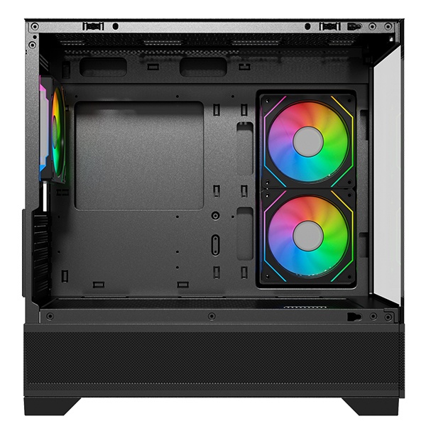 L’absence de ventilation en façade dégage le principal obstacle à l’avant, permettant une vue claire et ininterrompue sur tous vos composants, tandis que la seconde chambre abrite la gestion des câbles, les disques et le bloc d’alimentation.