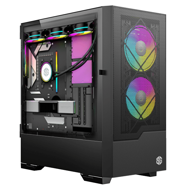 Le boitier moyen tour SG Strong ARGB se pare d’une paroi latérale en verre trempé et d’une façade acrylique pour admirer le rétroéclairage RGB de votre setup gaming. Il vous permettra de vous concevoir une configuration basée sur une carte mère de type ATX, Micro-ATX ou Mini-ITX.