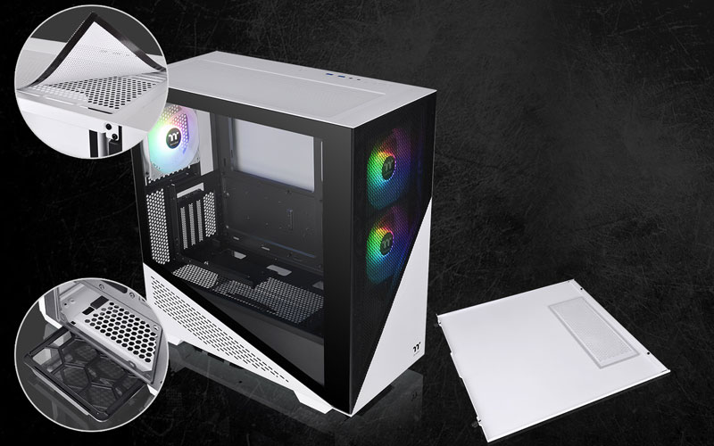 Le Divider 370 TG ARGB dispose d’un espace intérieur généreux. Il peut prendre en charge un refroidisseur de CPU d’une hauteur maximale de 170 mm, une carte graphique d’une longueur maximale de 400 mm (sans radiateur), une alimentation d’une longueur maximale de 230 mm (avec cage HDD), deux disques durs 3.5″ avec deux SSD 2.5″ ou un total de quatre SSD de 2.5″.La caractéristique exceptionnelle du Divider 370 TG ARGB est que le panneau unique composé d’un panneau en acier et d’une fenêtre en verre trempé de 3 mm sur le côté gauche. Le panneau latéral est visuellement divisé pour créer un look unique, et il est facile à retirer sans outil. La fenêtre en verre trempé est plus épaisse et plus résistante aux rayures que l’acrylique standard.