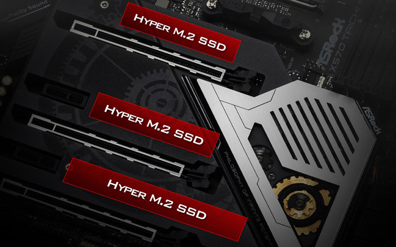 Avec trois slots M.2 PCIe 4.0 4x, la carte mère ASRock X570 Taichi prend en charge jusqu’à trois SSD NVMe pour booster les performances de votre PC Gaming. Vous profitez des vitesses de transfert de données les plus rapides sur la plateforme AMD Ryzen de 3ème génération.