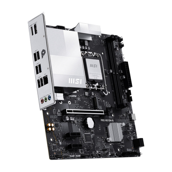 La carte mère MSI PRO H810M-B intègre tout le nécessaire à la conception d’un PC performant. Conçue pour accueillir les processeurs Intel sur socket LGA 1851, elle prend en charge la mémoire vive DDR5, les disques M.2 PCI-e 5.0 et l’USB 5 Gbps.