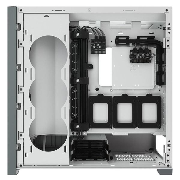 Le Corsair iCUE 5000X RGB Tempered Glass propose un câble management optimisé afin de favoriser un montage propre et rapide. Les câbles ne gênent pas la circulation du flux d’air et l’aspect visuel reste soigné.