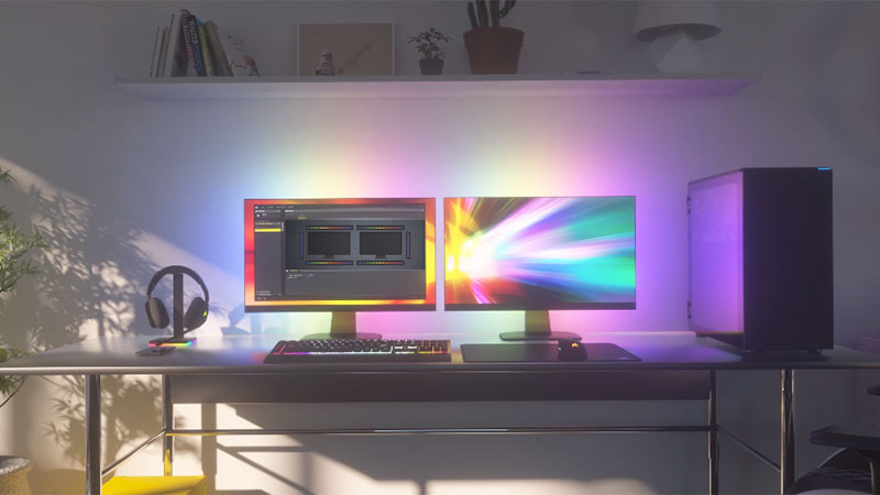 Étendez votre éclairage RGB au-delà de votre PC avec le Corsair iCUE LS100 Smart Lighting Strip Starter Kit, qui diffuse un éclairage d’ambiance original et attrayant, qui se synchronise avec votre système, vos jeux et vos médias.