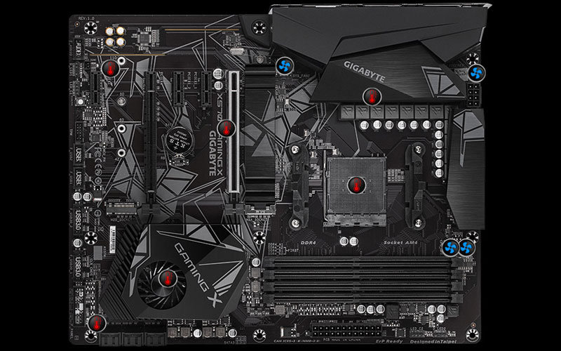 De plus, le chipset AMD X570 bénéficie de son propre ventilateur avec mode semi-passif pour bénéficier des vitesses de transferts les plus élevées du PCI-Express 4.0 en évitant les ralentissements liés à la montée en température du chipset.
