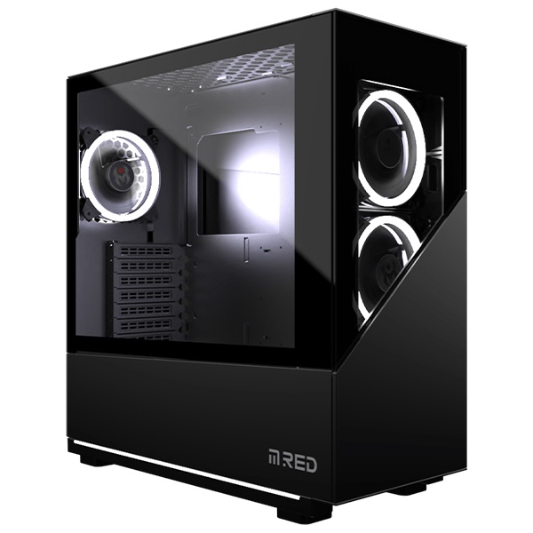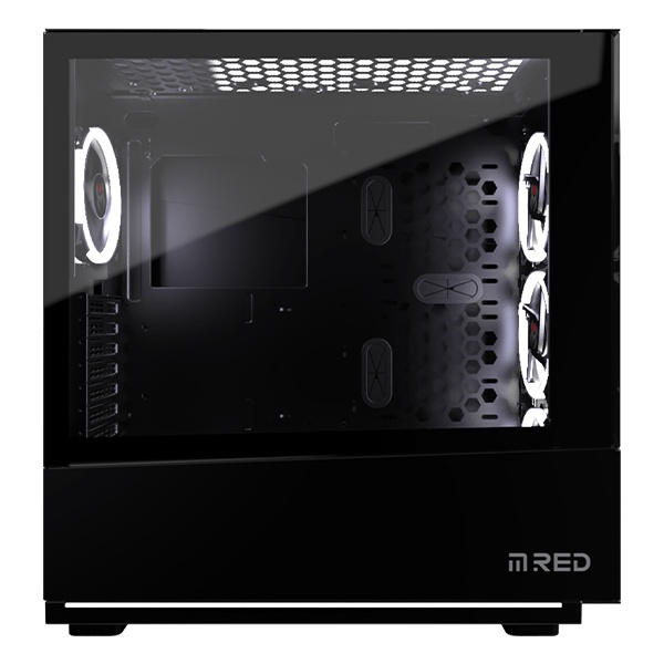 Affichant un design full black, ce boîtier PC MRed met en avant un air mystérieux de par sa façade transparente noir fumée en verre trempé. Ce détail laissera alors apparaître le rétroéclairage des ventilateurs présents pour un design lumineux et coloré. Son socle noir biseauté en acier prône la robustesse du produit. Ce dernier dispose également d’un rétroéclairage LED RGB sous forme de liseré. Niché sur ses 4 patins rectangulaires, ce boîtier PC MRed ornera le bureau sur lequel il sera déposé pour affirmer sa monture robuste et massive. Ce boîtier PC Elite Black étant polyvalent pour accueillir tout type de configuration, il saura contenir chaque composant tout en assurant un refroidissement efficace. Son esthétisme et son design égayeront la pièce dans laquelle il se trouvera pour passer de belles sessions numériques.
