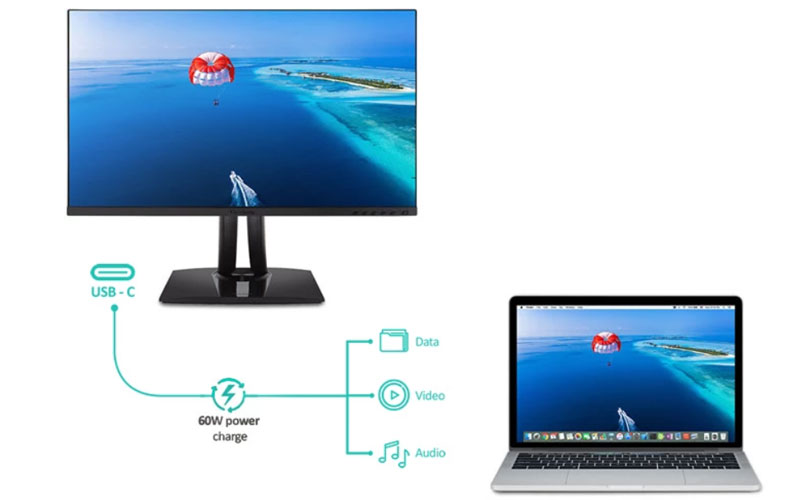 Une large connectique s’invite sur ce moniteur signé ViewSonic pour répondre à l’ensemble de vos besoins. Outre les entrées HDMI et DisplayPort, un port USB-C est au rendez-vous avec une gestion de l’alimentation jusqu’à 60 Watts et la prise en charge de mode DP Alt. Profitez également d’une sortie DisplayPort pour la connexion d’écrans en série et de plusieurs ports USB pour brancher des périphériques externes.
