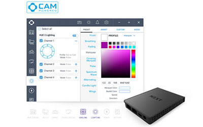 CONTRÔLE NUMÉRIQUE PAR CAMGrâce au logiciel CAM intuitif, vous pourrez choisir parmi les modes préréglés et personnalisés et synchroniser les ventilateurs Aer RGB 2 avec d’autres accessoires HUE 2 pour créer l’éclairage parfait pour votre PC. | ![]() |