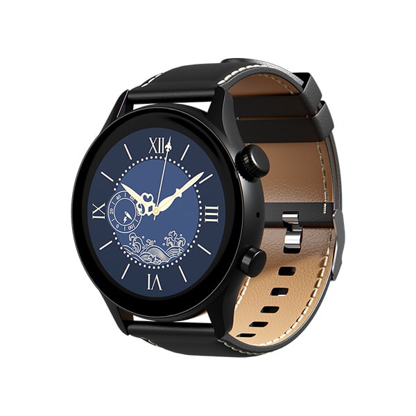 Montre connectée tracker d’activité Bluetooth. ORYX Montre Connectée Gleam4 Noir. Compatible Android et iOS. Étanche certifiée IP68. Cadran rond tactile de 1,36″ Amoled Résolution: 390×390 pixels, bracelet en silicone et cuir. Batterie 300mAh.