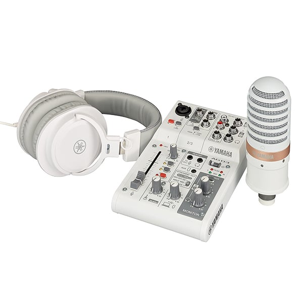 Yamaha vous propose un pack AG03MK2 LSPK dédié à la diffusion en direct. Il comprend une console AG03MK2, un microphone statique YCM01, un casque haute fidélité YH-MT1 et un câble micro XLR. Ce pack est parfait pour créer une station de diffusion simple mais puissante.