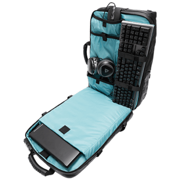 - Stockage: ordinateur portable de 17,3 po, clavier, souris, casque.