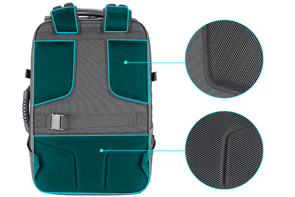 - Rangement compartimenté pour l’électronique et les vêtements.