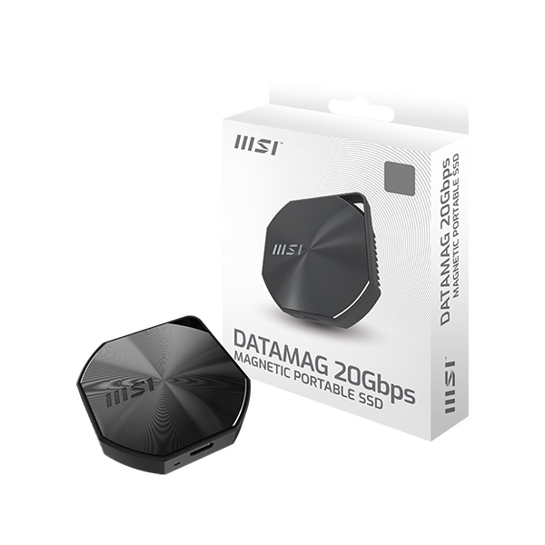 Le DATAMAG 20 Gbit/s, premier SSD portable magnétique de MSI, offre des performances à grande vitesse et une fixation facile avec des anneaux métalliques, prenant en charge des taux de transfert SuperSpeed USB 20 Gbit/s allant jusqu’à 1600 Mo/s dans des capacités de 1 To, 2 To et 4 To.