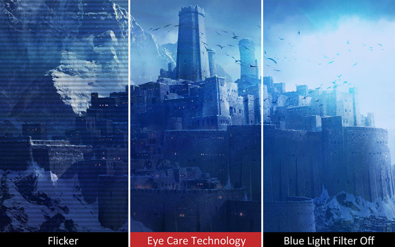 Les jeux se convertissent parfois en épreuves marathoniennes. Grâce au filtre de lumière bleue et la technologie sans scintillements ce moniteur vous permet de réduire la fatigue visuelle généralement ressentie après une longue période d’exposition. Vous survivrez donc plus facilement à vos adversaires dès lors que la fatigue visuelle commencera à les affecter !