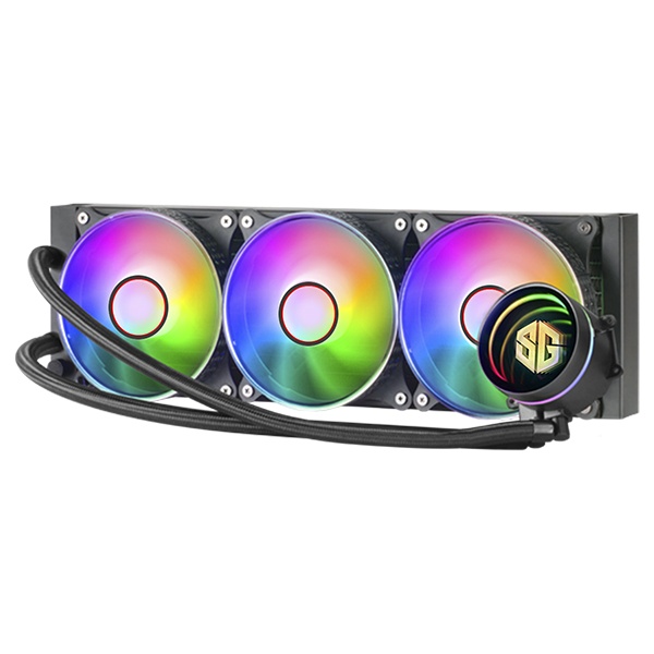 KIT DE REFROIDISSEMENT LIQUIDE SG 360MI. Miroir infini ARGB et performances exceptionnelles dans les systèmes de refroidissement liquide avec une puissance extraordinaire allant jusqu’à 550W. Nouvelle pompe OPTI-CHAMBER, 3 ventilateurs silencieux FDB ARGB, radiateur à faible résistance et compatibilité universelle.